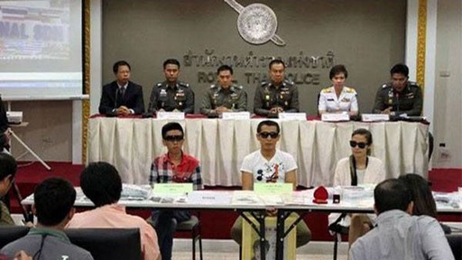 泰國(guó)警方召開(kāi)新聞發(fā)布會(huì),發(fā)布宋密秋(37歲、張健本名)、王文芳(29歲、張健妻子)及耿連保落網(wǎng)的消息。張健、王文芳及耿連保也被帶到新聞發(fā)布會(huì)現(xiàn)場(chǎng)。