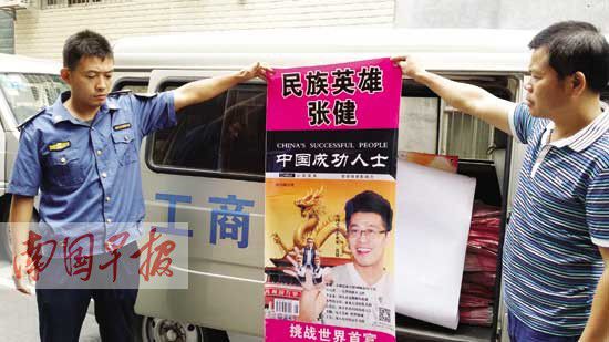 被執(zhí)法人員收繳的“未來(lái)世界首富張健”海報(bào)