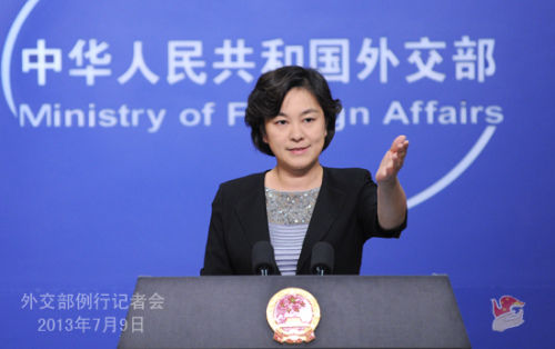 2013年7月9日,外交部發(fā)言人華春瑩主持例行記者會。